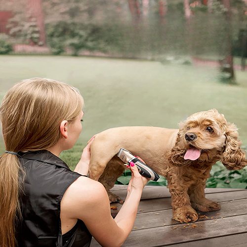 You should look for an option specifically made for animal grooming, such as cordless dog clippers from reputable brands such as Oster and Andis clippers. These types of pet hair trimmers often feature a rechargeable battery and adjustable speeds, which are important safety considerations when it comes to dogs.