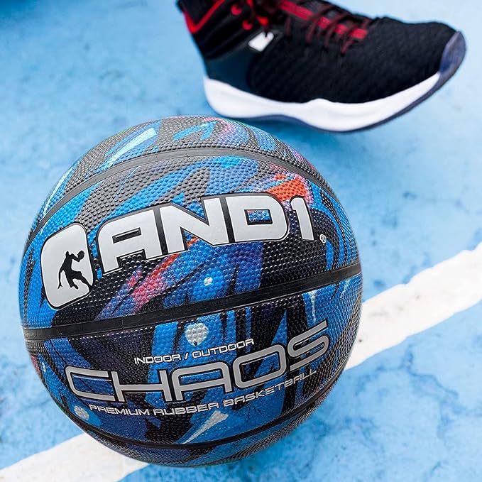 The AND1 Chaos Rubber Basketball is the perfect ball for intermediate players. Its size 5of (27.5 inches) makes it easy to palm, providing excellent control and maneuverability. You can use this basketball to play both indoors and outdoors, making it versatile for any playing surface. The deep channel construction enhances ball grip and control, allowing for precise dribbling and shooting. Made from high-quality rubber material, this basketball is built to last and can withstand the rigors of intense gameplay. Please note that the ball comes deflated and will require inflation using a needle pump. So whether you're playing a pickup game with friends or practicing your skills, the AND1 Chaos Rubber Basketball is the perfect choice for any basketball enthusiast. Get yours today and experience the difference!