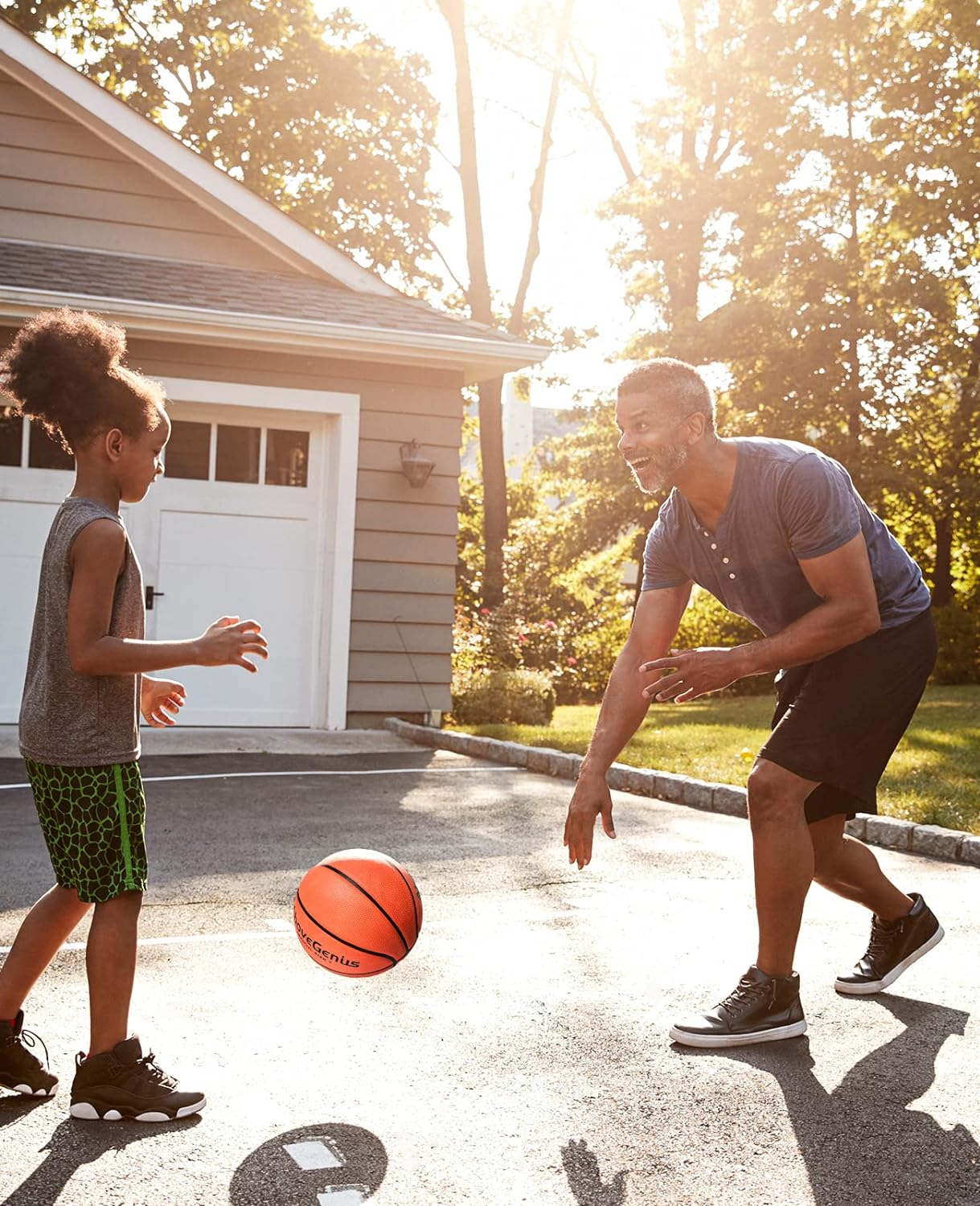 The AboveGenius 2 Pack Outdoor Basketballs are a basketball lover's dream come true! This set comes with 2 size 5 basketballs, making it perfect for both practice and gameplay. The balls are made from high-quality rubber material, ensuring durability and longevity. Whether you're playing on an outdoor cement court, indoor wooden flooring, or even in the pool, these basketballs are designed to withstand it all. The deep channels on the surface of the basketball provide ultimate control, improving ball grip and control for dribbling and shooting. Plus, they are regulation size 5 (27.5"), making them suitable for men, women, and youth ages 12+.