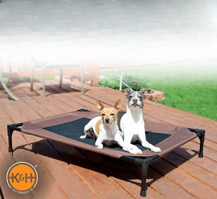 The K&H Pet Products Original Bolster Pet Cot is a great elevated outdoor dog bed that's perfect for larger breeds like Labs and GSDs. This elevated outdoor bed features removable bolsters so you can customize it to your pet's shape and size, making it ideal if you have more than one furry friend.