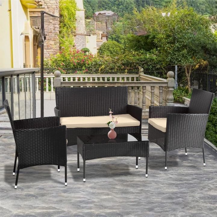 FDW Patio Furniture Set 4 Pieces Outdoor Rattan Chair Wicker Sofa