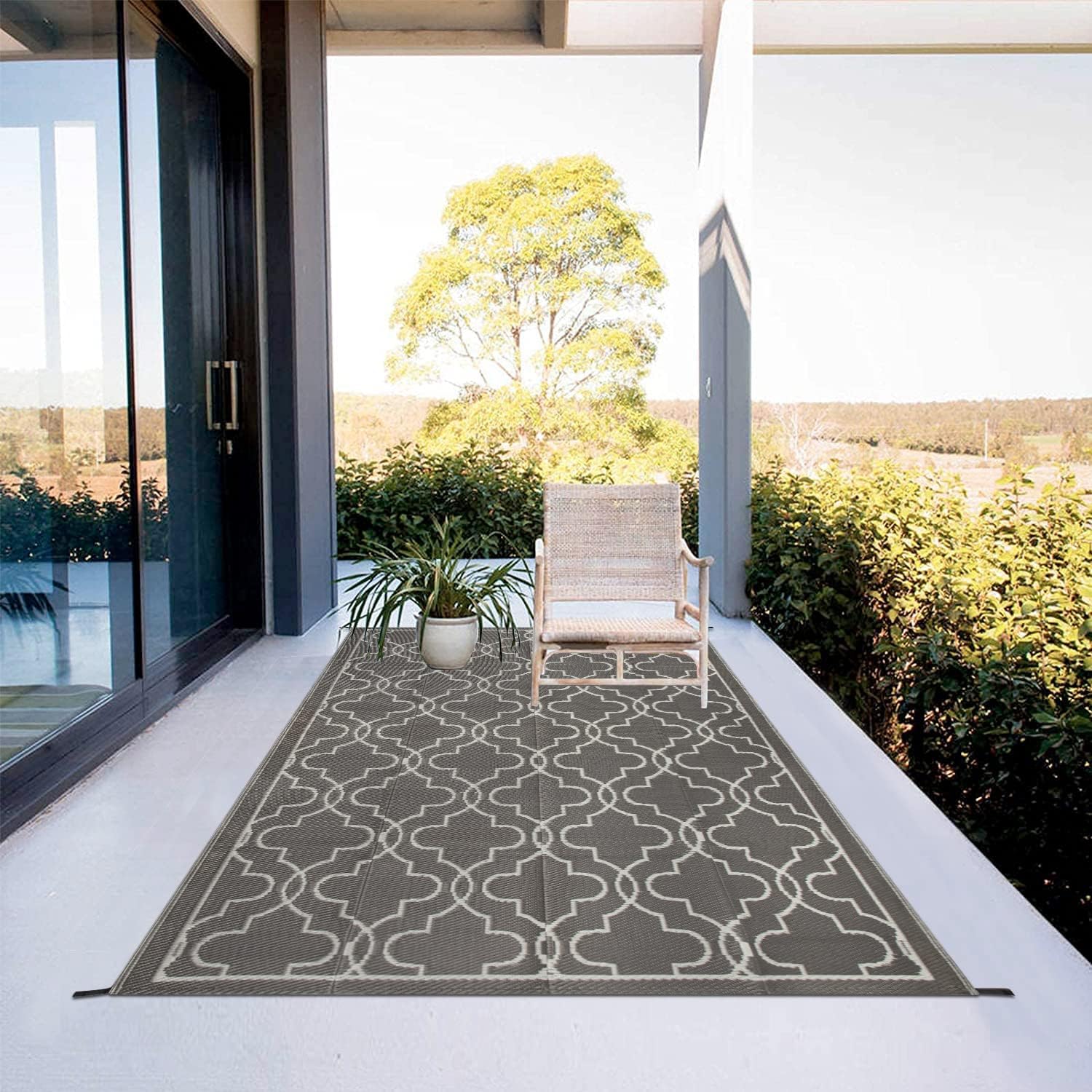 LILIOFFIC Reversible Mats - Plastic Straw Rug, Outdoor Rugs are the best RV patio mats for any patio decor. Our outdoor rugs are made with polypropylene and tightly woven for a comfortable feeling underfoot. They are reversible, double weave, allowing you to have two different looks in a matter of seconds. This outdoor rug is very lightweight and has low static electricity, making it perfect for any environment. It is also quick and easy to clean, just remove dirt with water and dry. Plus, this rug comes with a carrying bag and case for more convenience.