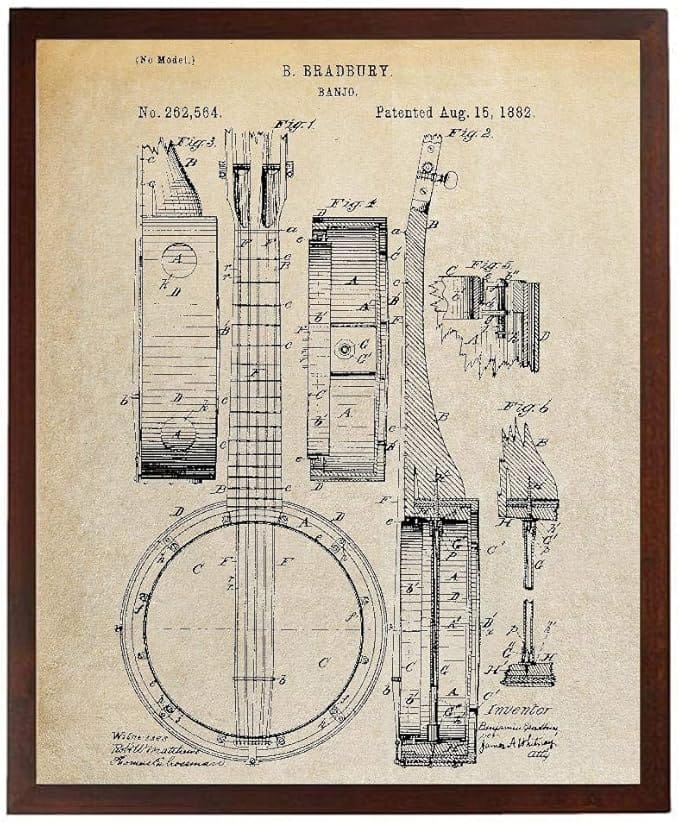 Transform your space with this exquisite Banjo Mandolin Patent Poster, perfect for any music enthusiast. Its vintage aesthetic not only adds character to your home or studio but also serves as a conversation starter among fellow musicians and visitors.