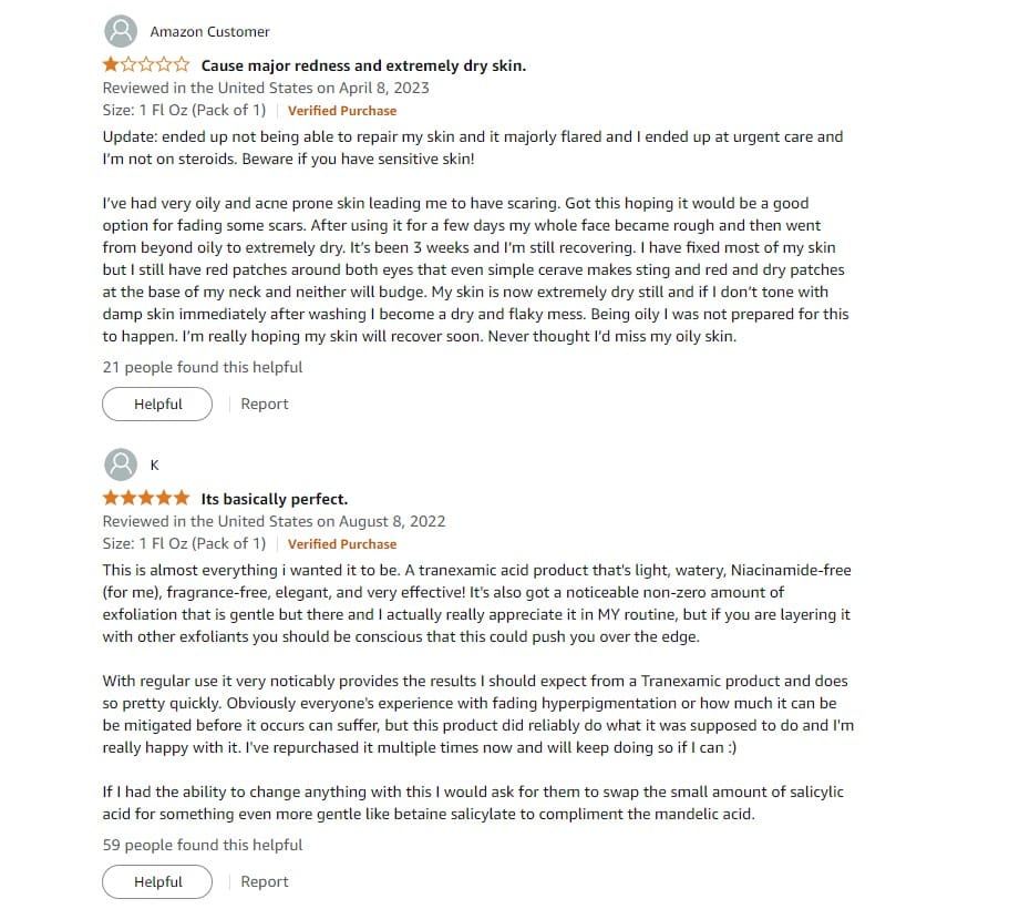 - Some individuals may experience irritation or allergic reactions due to tranexamic acid or other ingredients in the formulation..