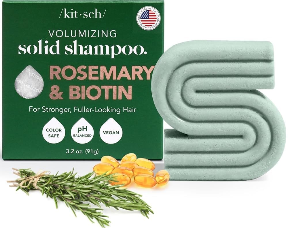 Kitsch Rosemary & Biotin Volumizing Natural Shampoo Bar for Hair Growth, Strengthening & Thickening Shampoo for All Hair Types, Made in USA, Vegan, Paraben Sulfate & Cruelty-Free Soap