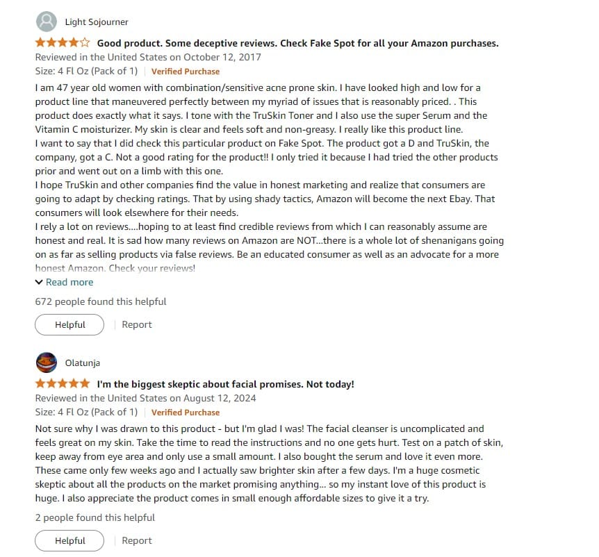 - Effective Ingredients: TruSkin Vitamin C Cleanser contains Vitamin C, which is known for its antioxidant properties and can help brighten the skin while reducing signs of aging.